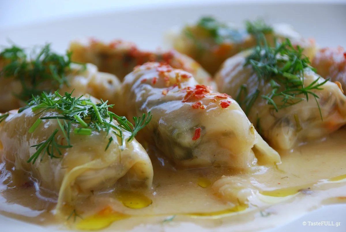 The name might confuse you, but their tasted won’t. Cabbageleaves are boiled ‘till softened and then filled with rice, ground pork and herbs in a slightly sour white sauce based on a mixture of lemon and eggs. The process requires a skillful cook and is quite time-consuming but the taste rewards the effort. Don’t judge it until you try it, everyone becomes a fan instantly!