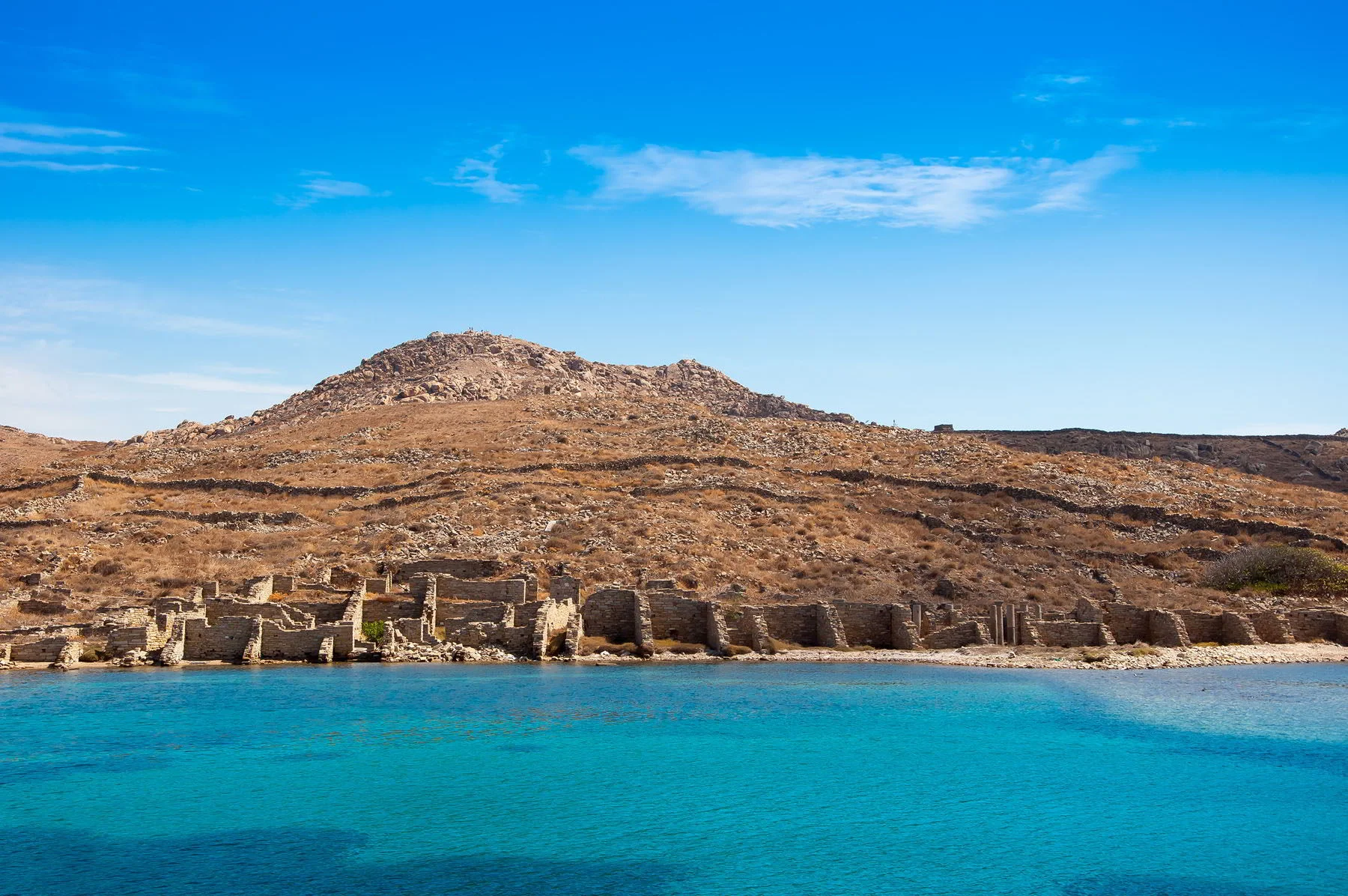 Here’s a brief background for readers who might not be familiar with Delos. The island, situated just over 2 km west of Mykonos, is one of the most important historic and archaeological sites in Greece. It’s often called “the sacred island” and “the island of light” because, in Greek mythology, it was the birthplace of Apollo, the god of light, and Artemis, the goddess of night light.
