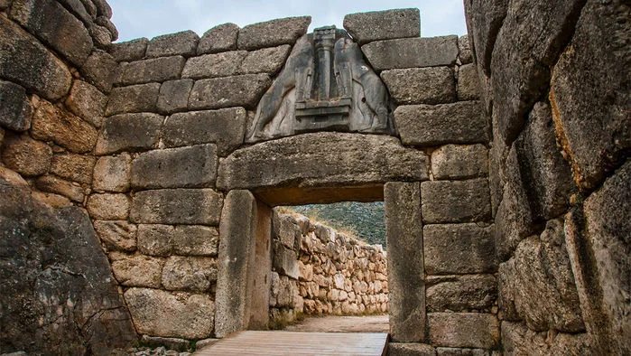 The Lion Gate was the main entrance to the Bronze Age citadel of Mycenae, the center of the Mycenaean civilization.