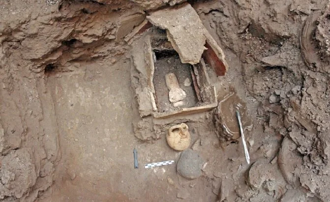At the same House of Desks, as the building has been conventionally named, excavators in 1999 had found a gold ibex figurine inside a clay box, next to a pile of animal horns.