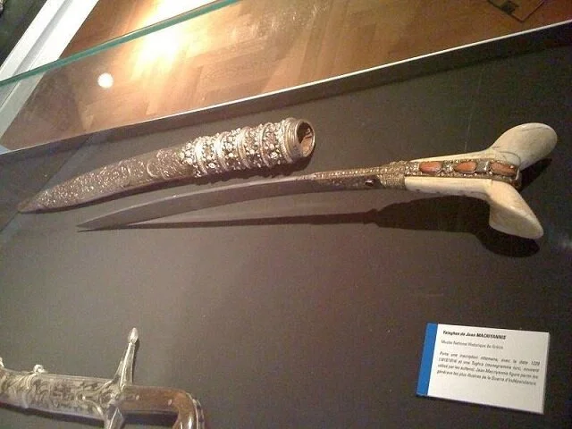 The yataghan was mainly a weapon of Turkish origin and was often a booty. It was a short, curved knife that had no hand guard at the intersection of the blade and handle. Its sword was nearly half a meter or more long and made of hard-welded steel.