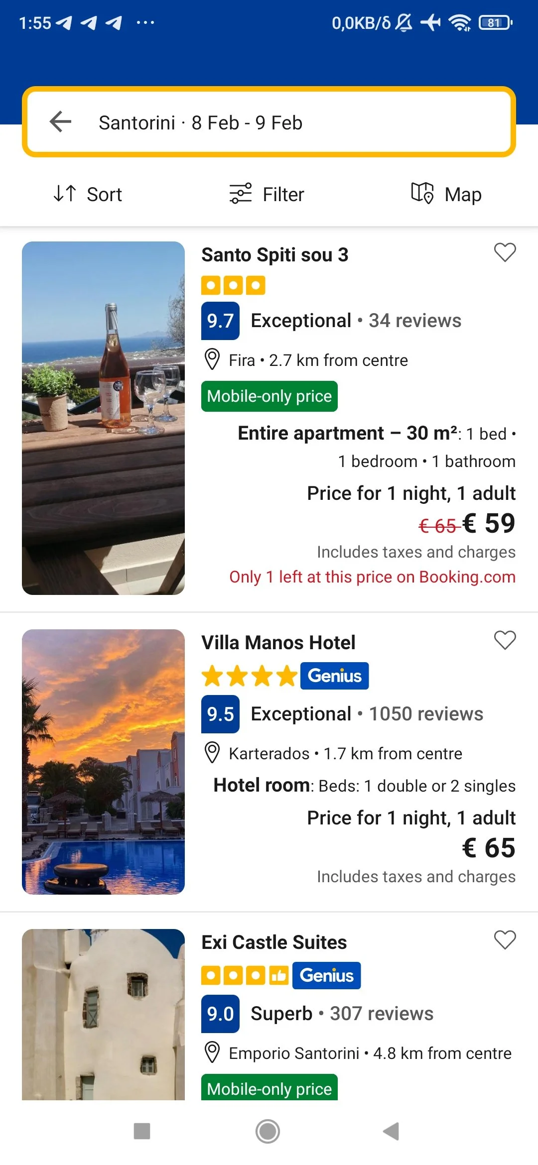 After reviewing booking platforms, it appears that while there hasn’t been a dramatic drop in prices, there are notable discounts in certain accommodations—some up to 40%. However, many hotels haven’t adjusted their rates, likely assuming that few people would choose Santorini for a leisure getaway under the current circumstances.