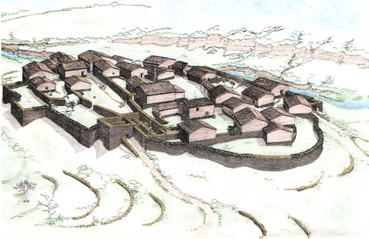 At the highest point of the hill, a "megaron" was built, an impressive structure that served as the center of the new settlement, surrounded by circular stone enclosures.