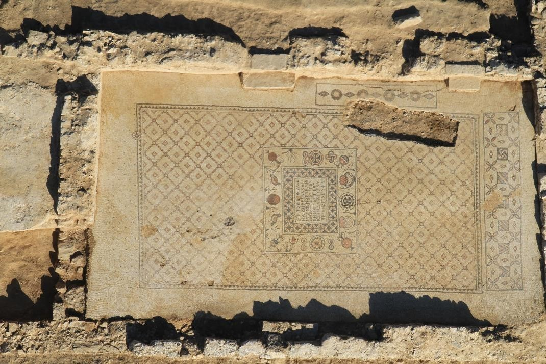 One of the excavation’s most exciting finds was a unique mosaic discovered in the monastery’s chapel. At its center lies a Maltese cross, and just below it, framed in a decorative border, is a three-line Greek inscription naming the monastery and listing four monks who once lived there.