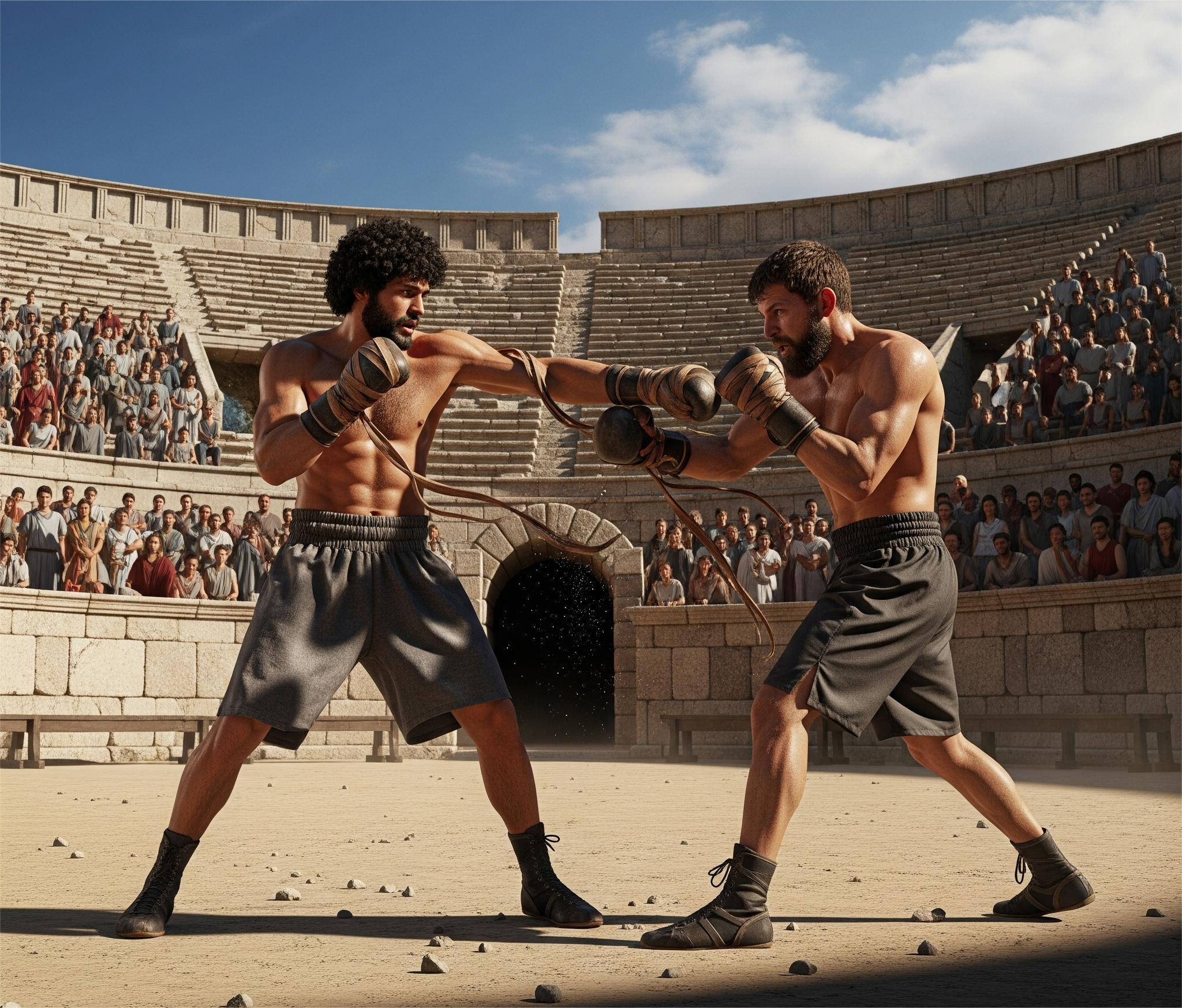 Unlike modern boxing, ancient Greek boxers did not fight within a ring. Instead, matches took place in open areas where combatants faced off until one conceded, was incapacitated, or signaled defeat by raising a finger. There were no rounds or timed breaks.
