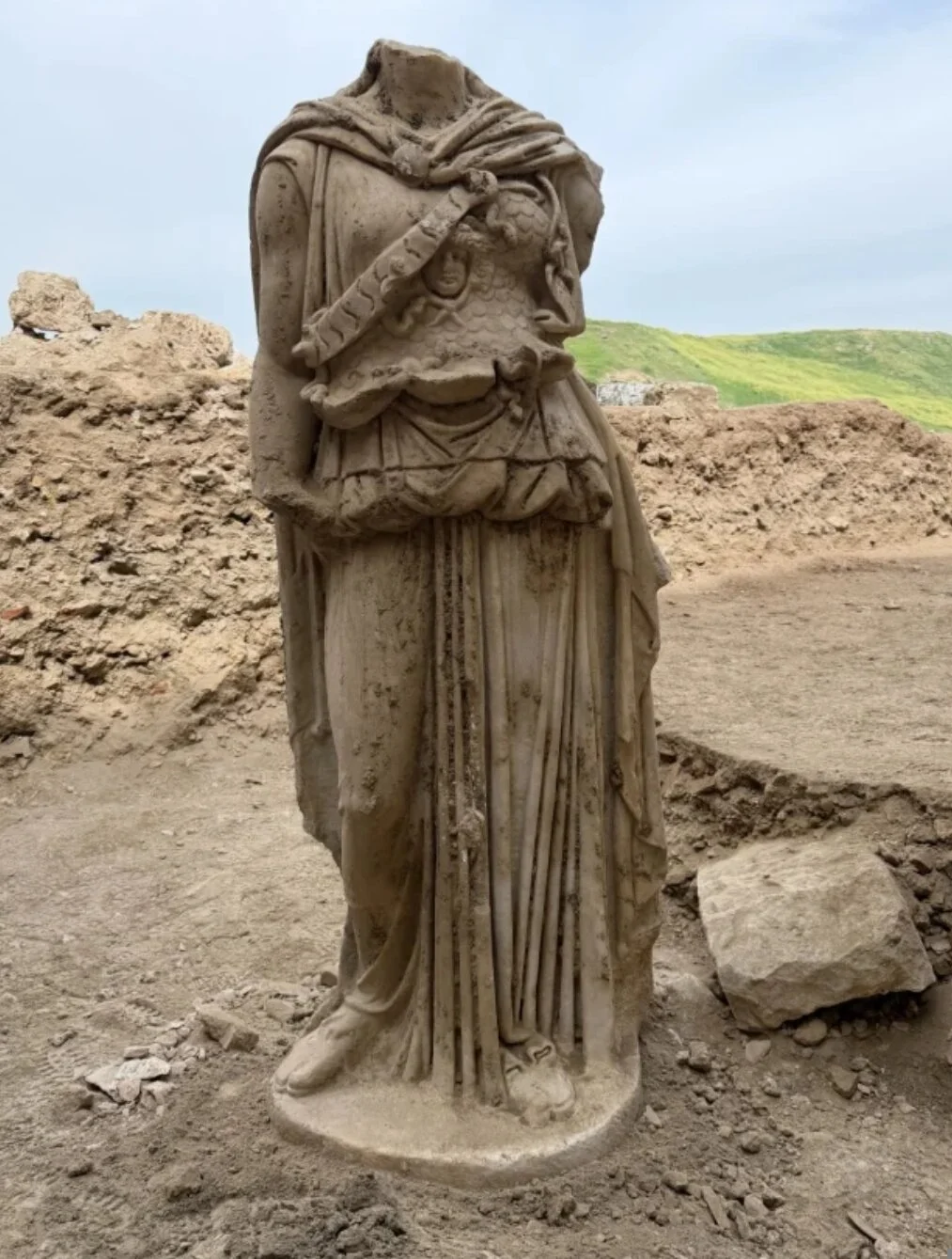 A significant archaeological discovery has emerged from the ancient city of Laodicea, located in present-day Denizli, Turkey, where excavations have unearthed a stunning 2,000-year-old statue of the goddess Athena. The find was made during restoration work within the stage building of the Western Theater, a structure dating back to the 2nd century BC. The white marble statue, standing approximately two meters tall, was discovered lying face down among rubble fill near the outer wall of the stage. This area was once a vibrant center for cultural expression, hosting performances of Homeric epics and serving as a focal point for the artistic life of the city.